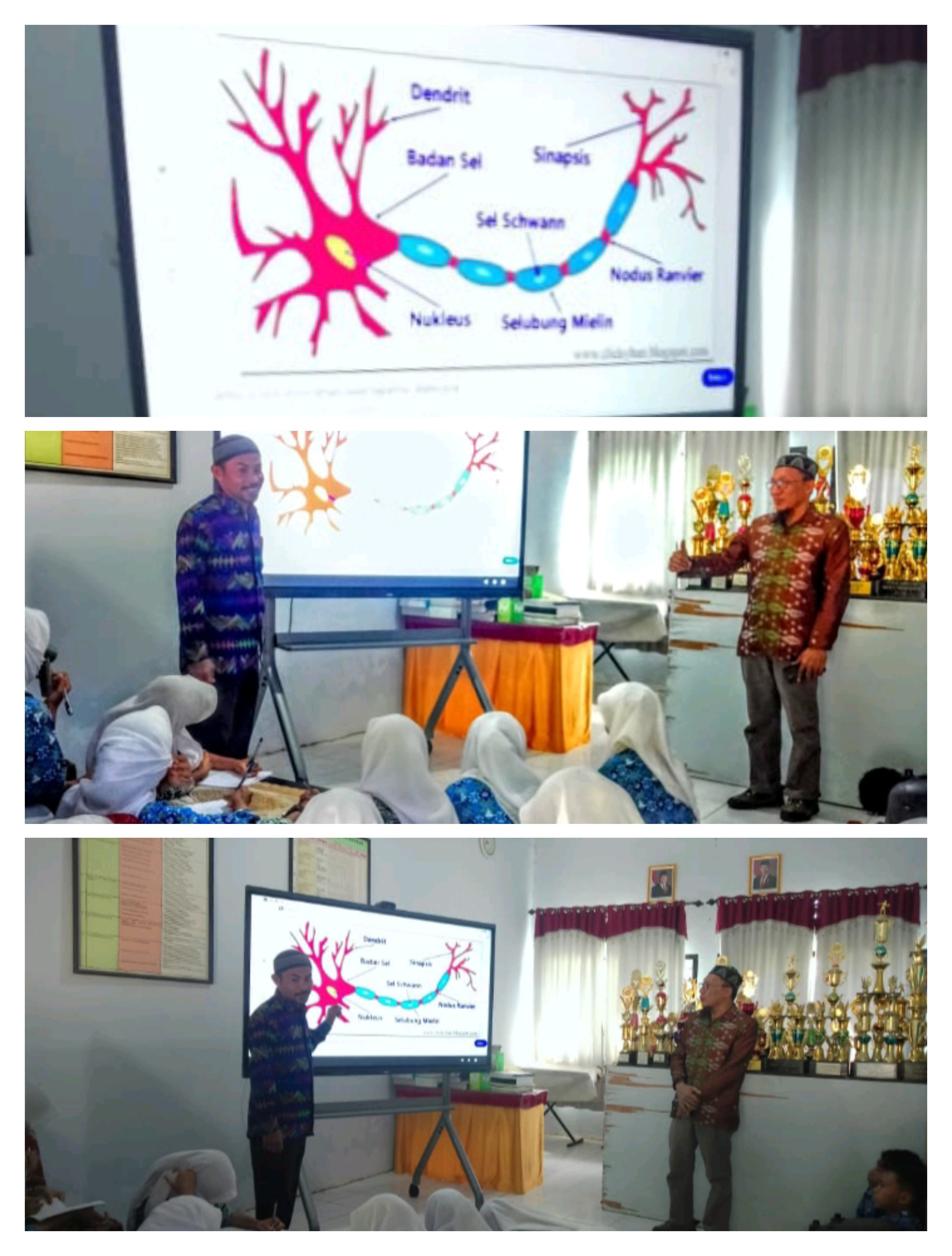 Dalam sesi tersebut, IFP digunakan sebagai kanvas digital utama. Pak Rio menayangkan visualisasi 3D YouTube yang kompleks dari organel sel manusia yang kemudian ia jeda untuk melakukan interaksi langsung. Siswa didorong untuk maju ke depan dan menggunakan layar sentuh IFP untuk: